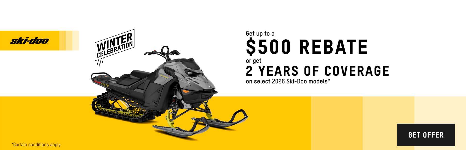 Get up to a $500 rebate or get 2 years of coverage on select 2026 Ski-Doo models